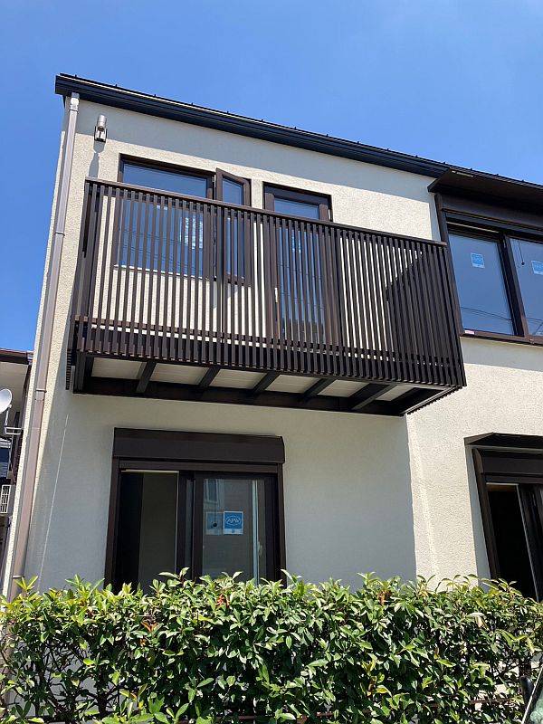 外付けバルコニーの長所は、(1)雨漏りの心配がない、(2)メンテンナンスフリー、(3)施工費が安く済む、という3点。バルコニーが家の裏側や正面からみて目立たない位置にくる場合(今回のI様邸のケースです)は、積極的に検討して良いアイテムだと思っています。