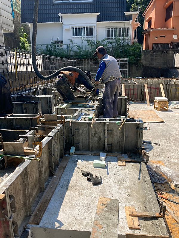 コンクリートの打設が始まりました。基礎工事はもうしばらく続きます。