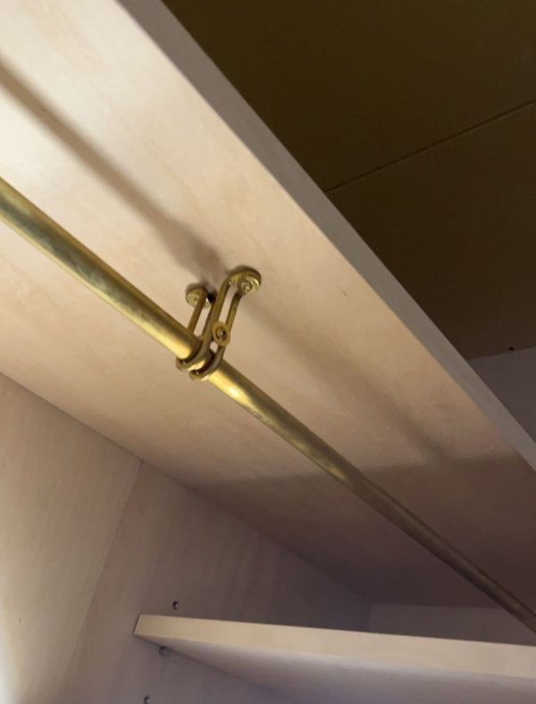 こちらはクローゼットの中に取り付けたハンガーバー。バーを支える金具もすごくオシャレで、下からのぞき込まないと見えないのが残念です。