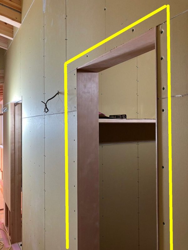 下の写真の黄色い枠の部分にドア枠の本体が隠されているというわけです。
