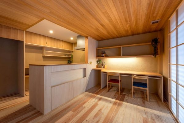 LDKの東側を撮影した写真。東側の壁にはスタディカウンターを造り付けています。