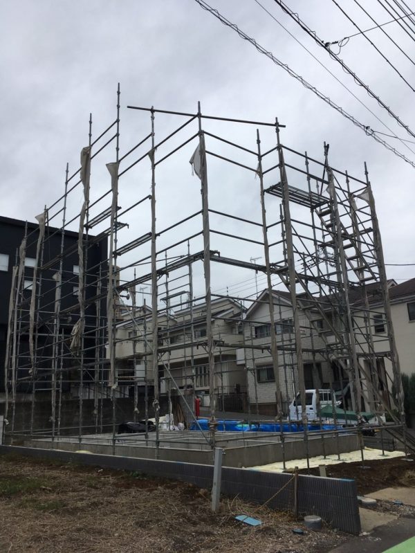 基礎ができあがると、次は上棟です。現場に土台用の木材が搬入され、同時に足場の組み立ても始まりました。来月号では上棟の様子を紹介できると思います。