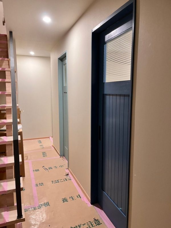 設計段階では北欧テイストをご希望されていたY様ご家族ですが、建具など内装の仕様決めが進むにつれて、「アメリカンテイストも取り入れたい」というお話になりました。好きなモノを自由に選べるのが注文住宅の良いところ。というわけで、和洋折衷ならぬ、“北欧×北米ミックス”な内装工事が進む、Y様邸の工事レポートをお届けします。