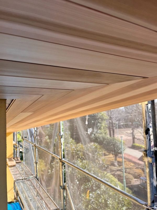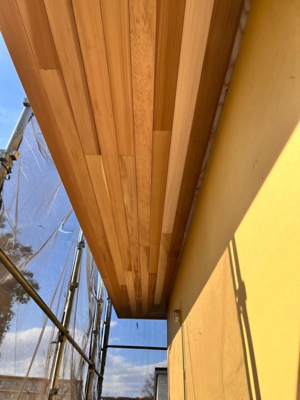 きれいに仕上がった軒天の写真を載せておきます。野口大工も納得してくれるでしょう!
