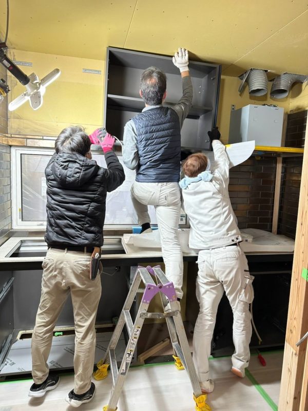 I様邸のキッチンは、海外製の輸入キッチンです。代理店から派遣された専門の職人さんが3人やってきて、丁寧に据え付けてくれました。