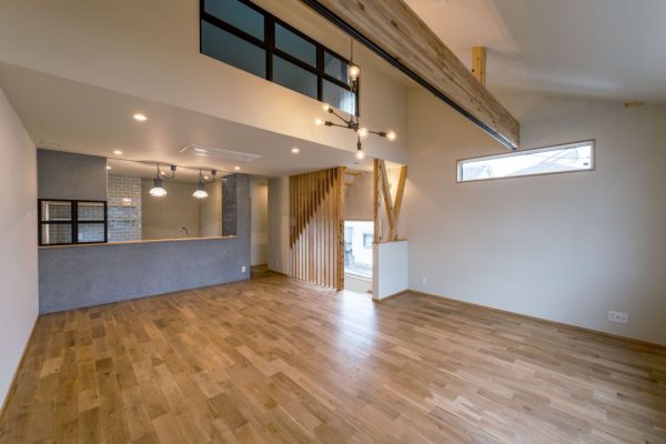 2階リビングです。左側にはキッチンがあります。