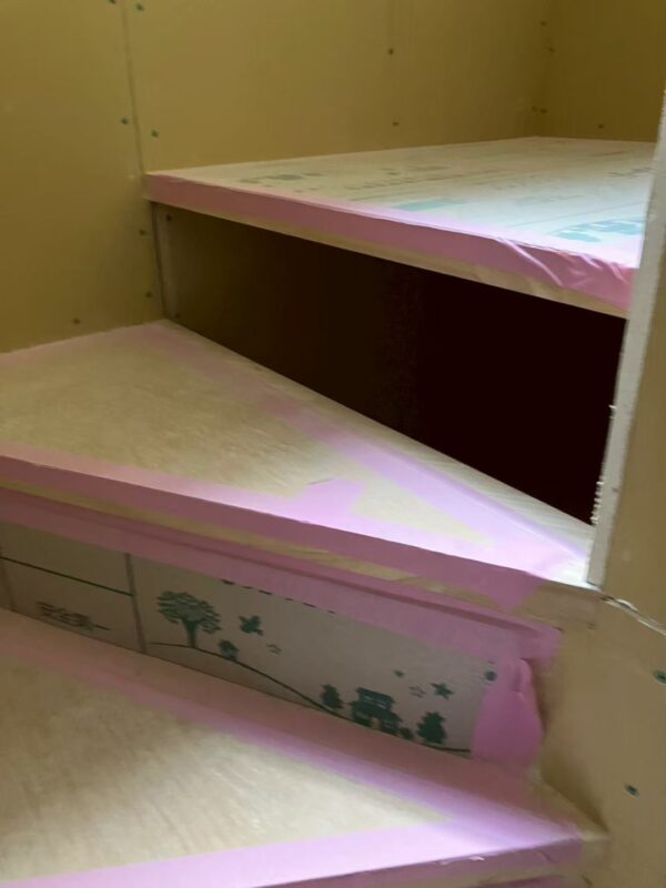 ちなみに全部の蹴込み板を省くスケルトン階段にしなかったのは、階段下の一部をパントリーにするためです。パントリーにはあまり直射日光を入れたくないですし、ホコリも気になりますものね。