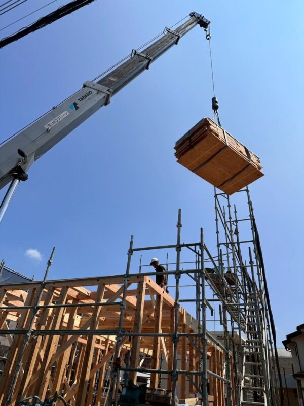 基礎づくりのお話はここまでです。最後に、上棟の様子を写真で紹介して、O様邸レポートを締めたいと思います。