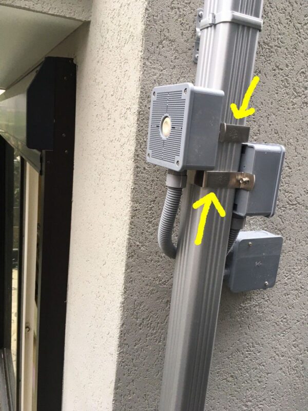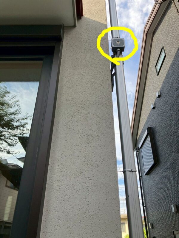 さて、話は変わってこちらの写真。O様邸の雨樋に、町内スピーカーのようなものが付いていますが…これ、何だと思いますか?