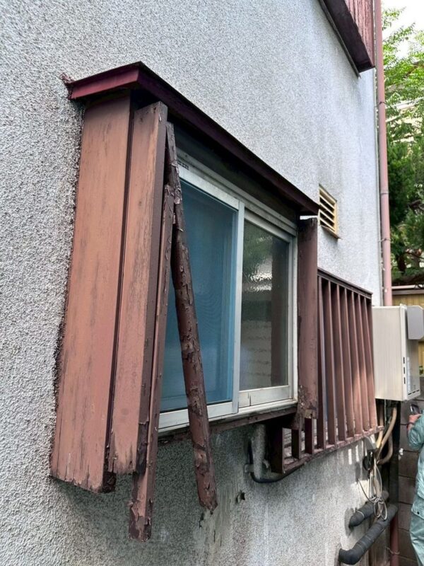 浴室と洗面室まわりでは、窓の修繕も行いました。下の写真はリフォーム前で、手前が洗面室の窓、奥が浴室の窓です。