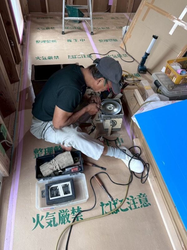下の写真は、T様邸の棟梁の鈴川大工です。さて、彼はいったい何をしているのでしょうか?