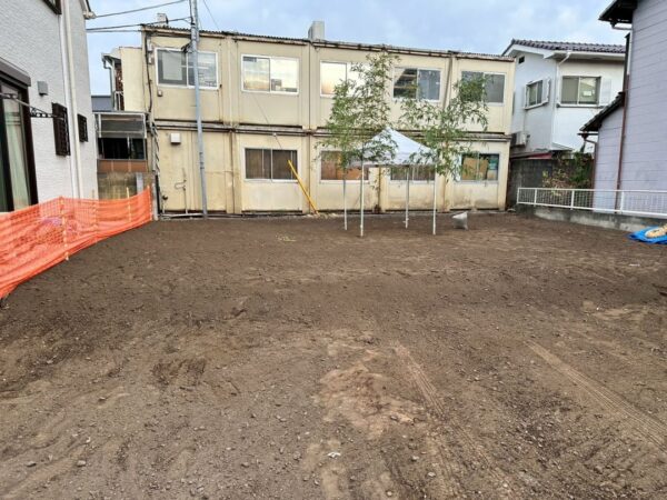 そしてこちらが現在の様子。惜しいと思いつつも解体し、現在は更地になっています。地鎮祭の準備中の写真です。
