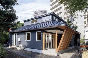 住宅密集地に建つ坪庭のある家