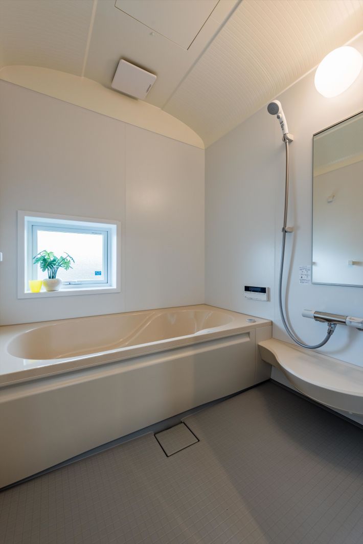 白い壁で統一した清潔感のあるバスルーム&トイレ