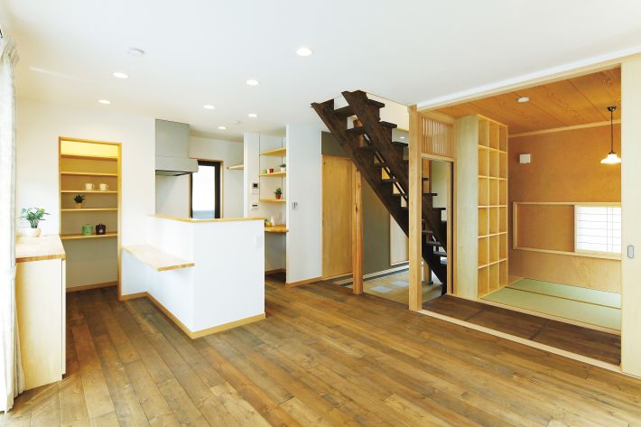 リビングと和室の間の床板を外すと、和室が離れに!遊び心にあふれた設計