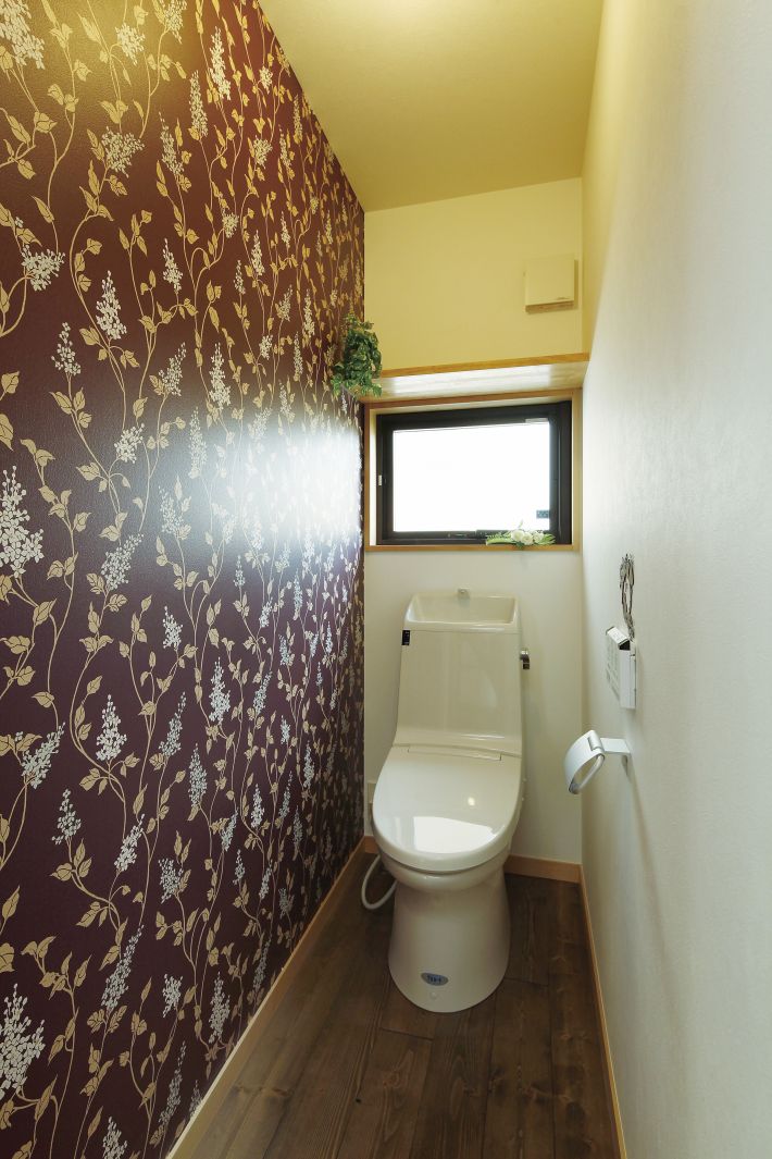 壁にアクセントクロスをあしらって、華やかなトイレ空間に