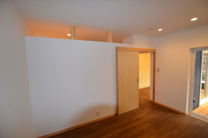 お子さんの部屋とデッキでつながるご夫婦の寝室