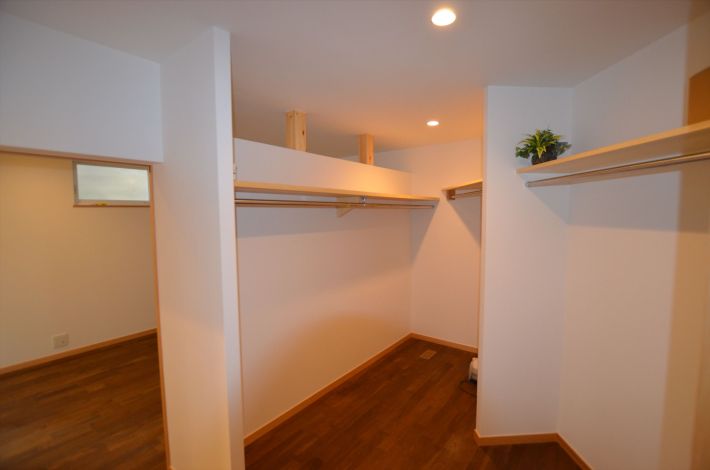 家族のクローゼット。家の形状を利用した無駄のないスペースになっています