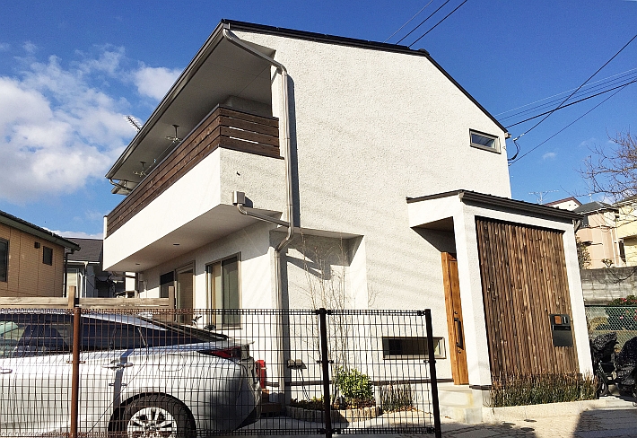 K様邸の外壁は火山灰を加工した自然由来の外壁材「そとん壁」を使用しています