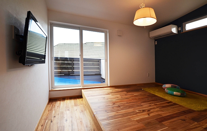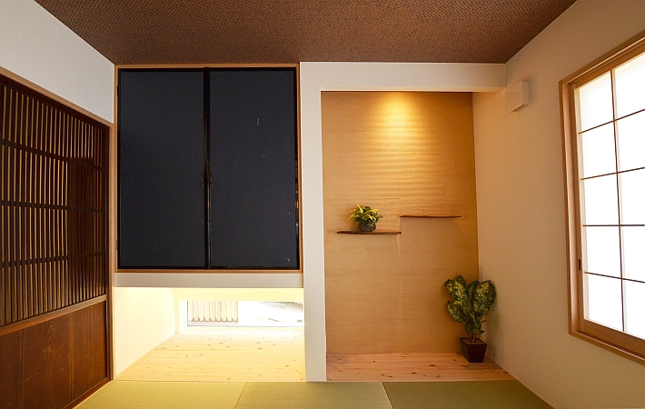 寝具を敷くスペースを一段上げた主寝室。これは旅館をイメージしています