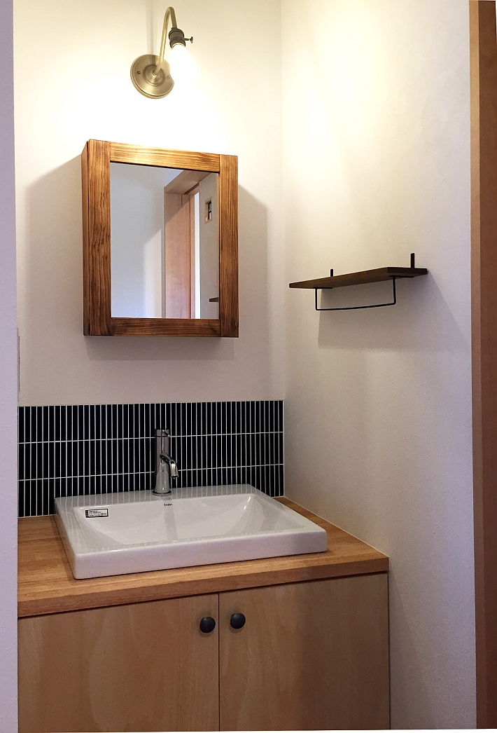K様支給の洗面ボウルや鏡を備え付けたアンティーク調の洗面台