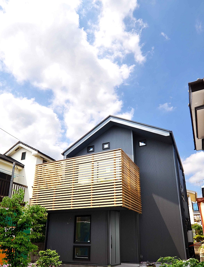 ダークグレーのガルバリウム鋼板を使ったT様邸の外観