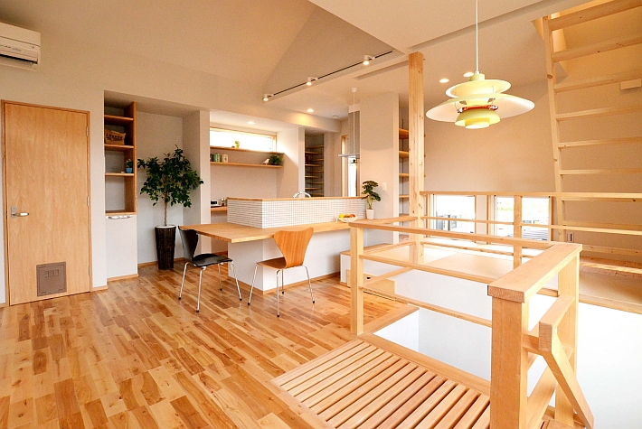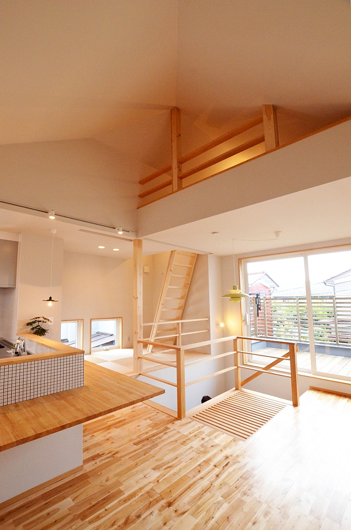 リビングの上にはロフトを設けました。床の一部がスノコ状になっていて、バルコニーからの光を下の階まで通します