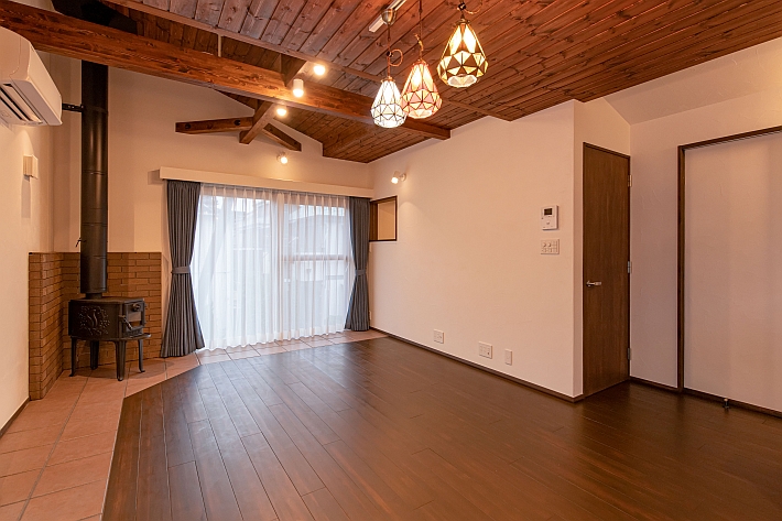 薪ストーブは、対流と輻射熱で空間を暖めます。エアコンのように風があたらず、優しく家全体を暖めてくれます。薪ストーブのすぐ後ろにはレンガを貼り、そのレンガの後ろにはALCボードを施工して、薪ストーブの熱が壁の中に悪影響を与えないようにしています