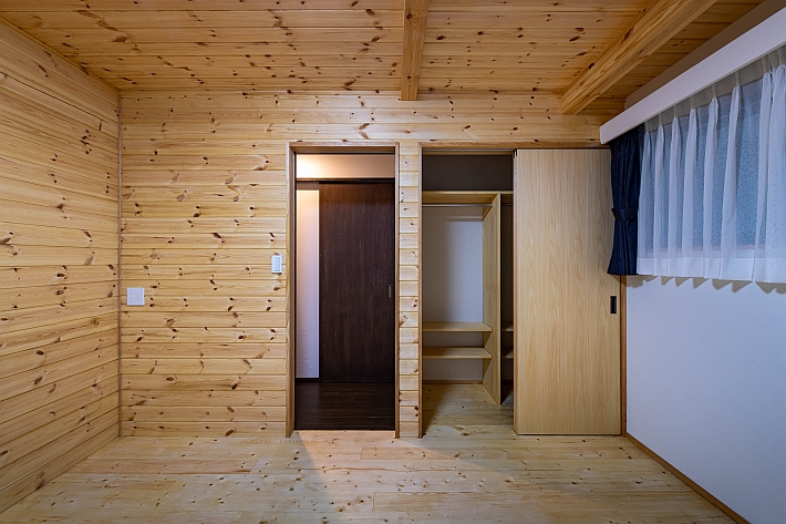 1階の子供部屋。パインの無垢材と珪藻土で仕上げています