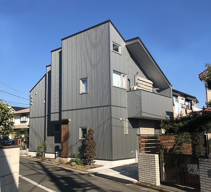 チタンメタリックの外壁の家