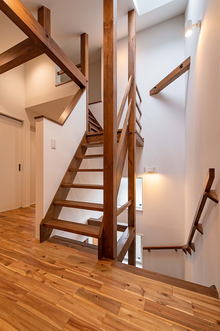 ロフトから2階の階段ホールを見下ろした写真です。