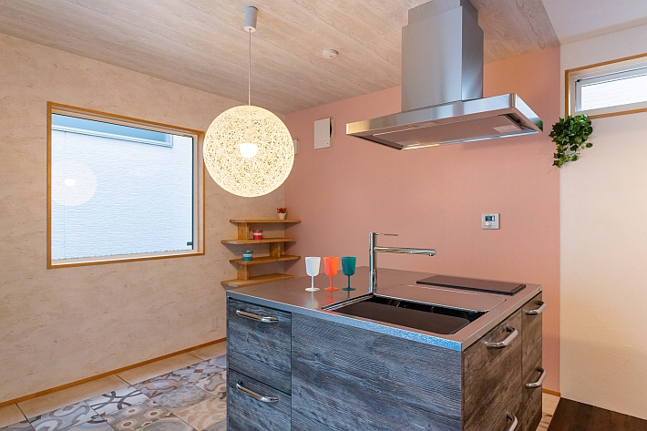 1階のアイランドキッチンは、トーヨーキッチンという会社の「アイキッチン・キューブ」です。