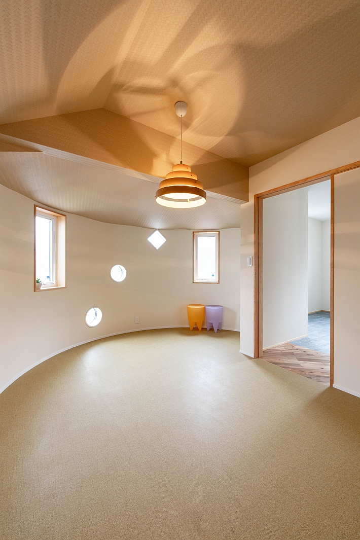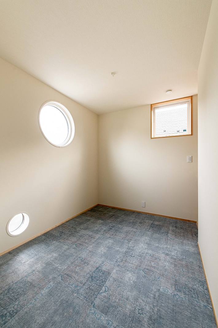 もう一枚、ワンちゃん用の小部屋の写真。ワンちゃん用のお部屋なので、ヒト用とワンちゃん用、大小2つの丸窓を開けています。