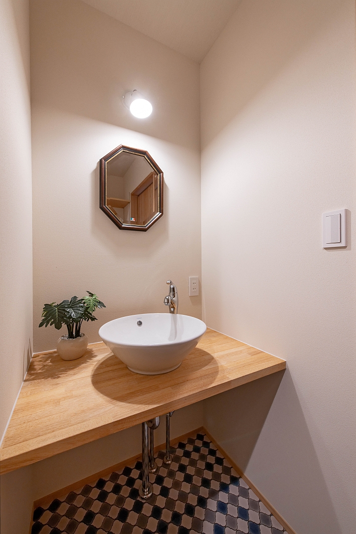 中庭に面した1帖ほどのスペースには、タイルを施工しています。タイルは名古屋モザイクの「キラ」という商品です。