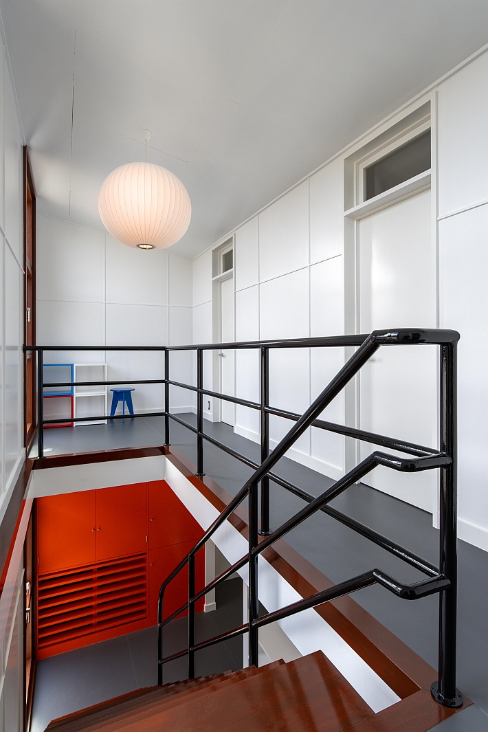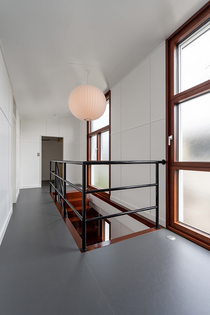 もう一枚、逆方向から撮った2階階段ホールの写真です。階段上の照明は「ハーマンミラー社」のバブルランプです。ハーマンミラー社のバブルランプは、1階リビングにも取り付けています。
