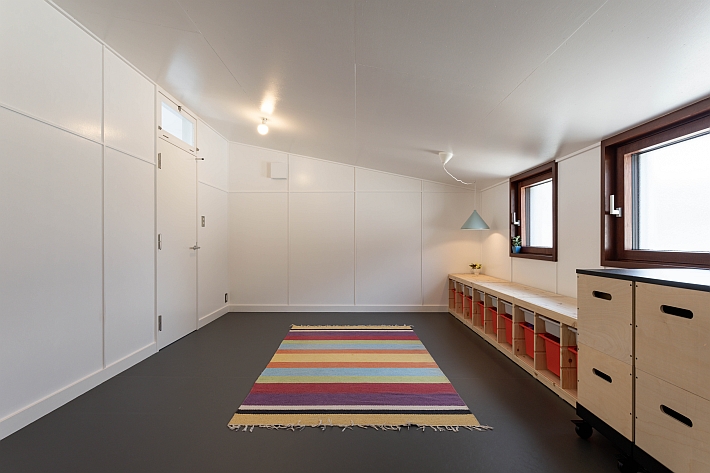 主寝室。こちらの床も天然リノリウムで仕上げています。