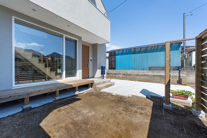 建物の前には日当たりの良いお庭があります。植栽の計画はこれから。シンボルツリーはどんな樹木になるのか、楽しみです。