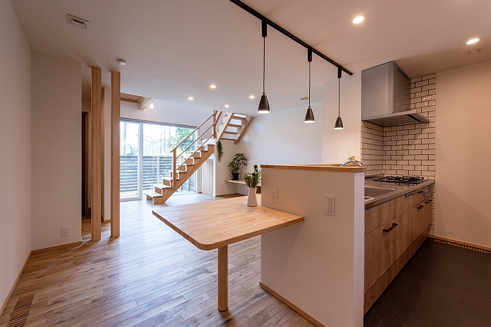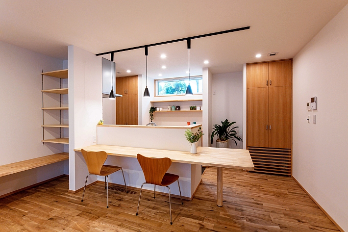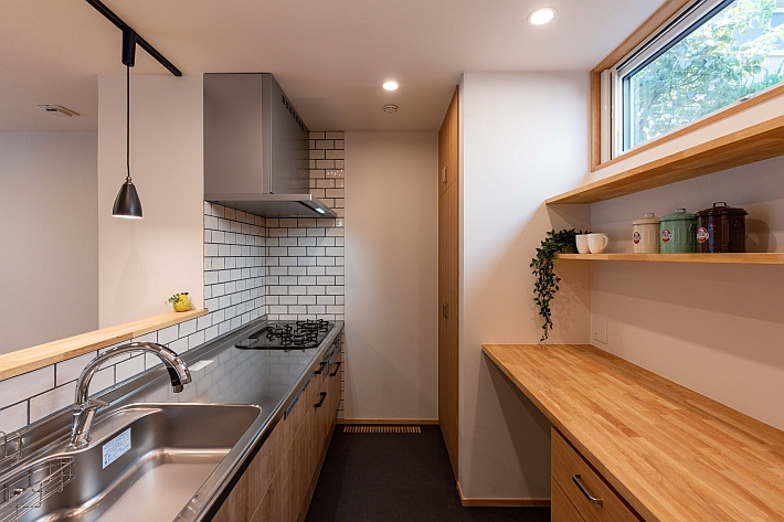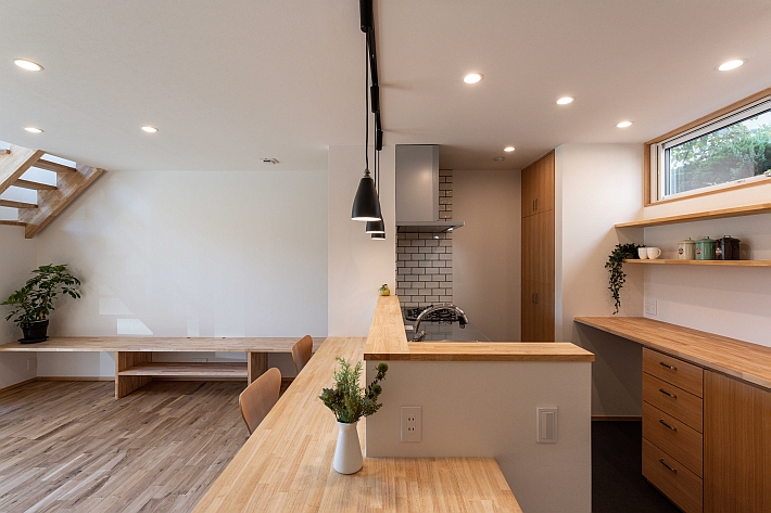1階北側に配置したカウンター付きのキッチン。
