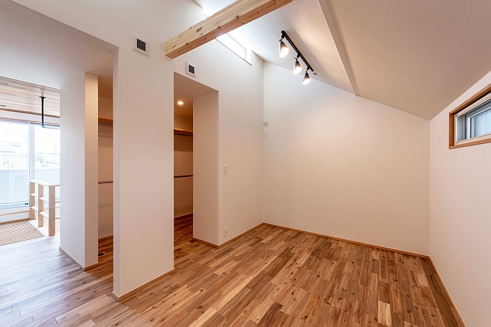 2階北側に設けた子ども部屋。将来、間仕切りをすることで2部屋にすることができます。