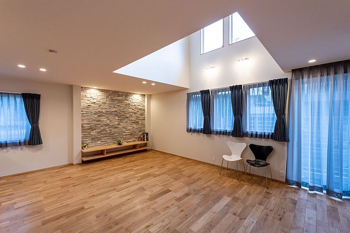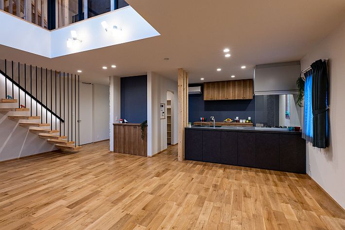 タグ:スケルトン階段,パントリー,バンピーウォール,ロフト,吊り階段,吹き抜け,床下エアコン,書斎,無垢材,造作家具