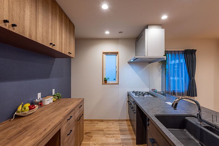 キッチンの背面カウンター家具は小野寺工務店で造作しています。