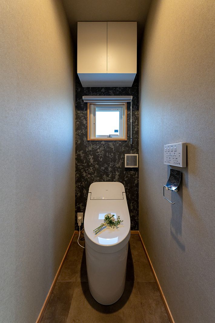 南西の角地に建つS様邸、道路に面した南側か西側に玄関を設けるのが一般的なプランですが、ご主人から「隠れ家のように狭い通路を入ったその先に玄関を設けたい」というご要望があり、あえて北側に玄関を設けています。