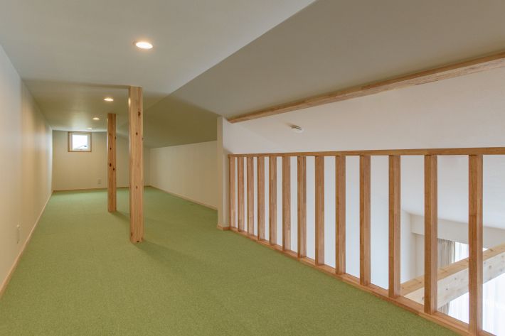 子世帯/若草色のタイルカーペットを貼ったロフトスペース。リラックスできる素敵な空間となりました