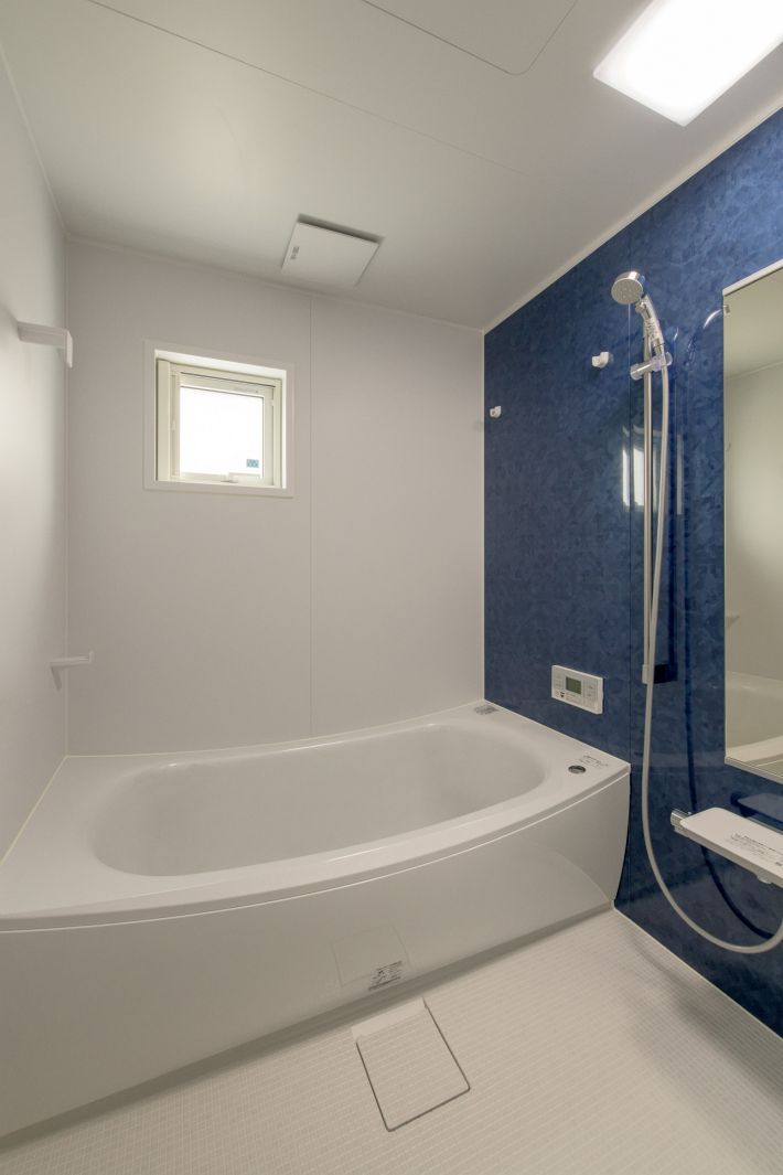 子世帯/バスルーム。ブルーのアクセントパネルが爽やかです