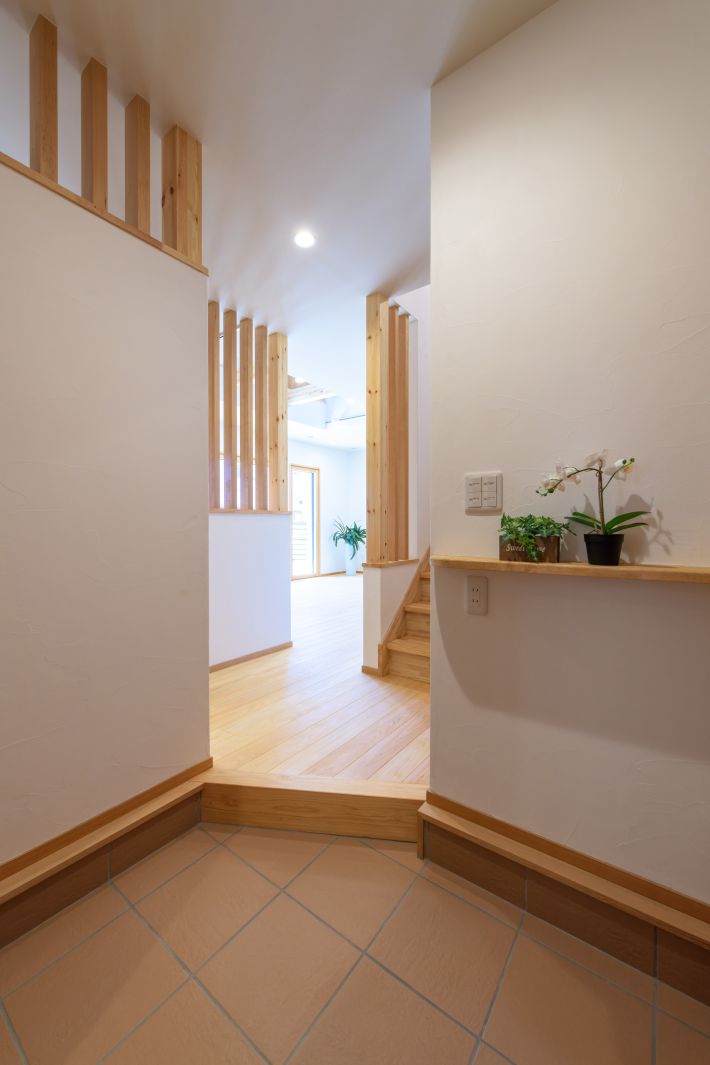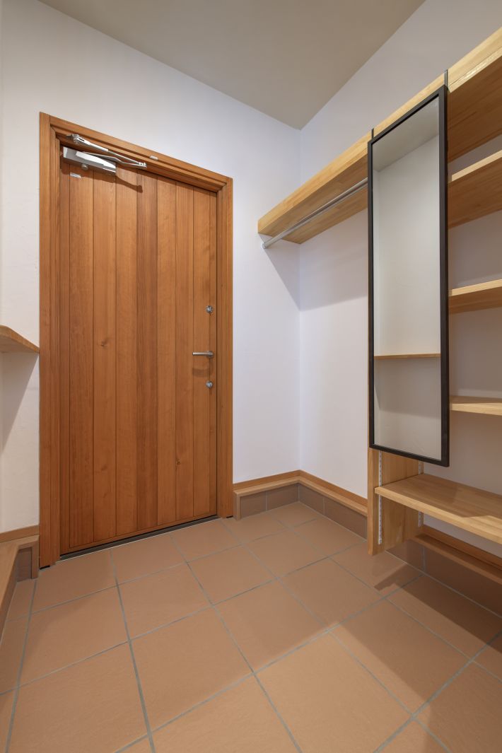 玄関ホール。玄関ドアも超高断熱仕様の国産木製ドアです。