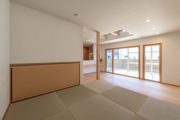 小上がりの畳スペースから見たLDK。開放的な眺めです。