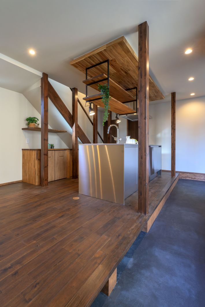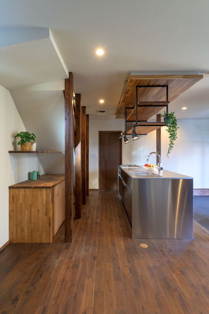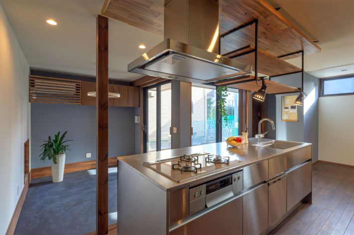 タグ:オールステンレスのキッチン,ドーマー,ロフト,出窓,和モダン,土間リビング,床下エアコン,有孔ボード,無垢材,造作家具