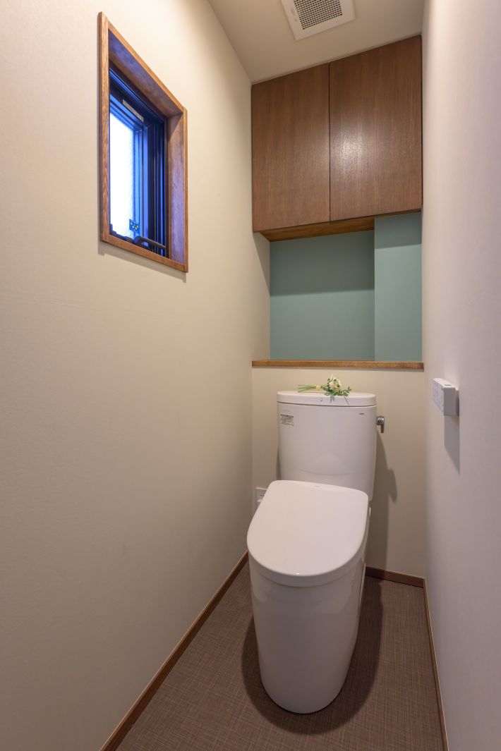 壁の一部にアクセントクロスを貼って奥行きを出したトイレスペース