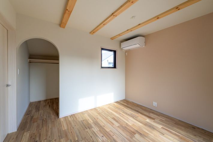 セカンドリビングのアールの下り壁の向こうは、ウォークインクローゼットとなっています