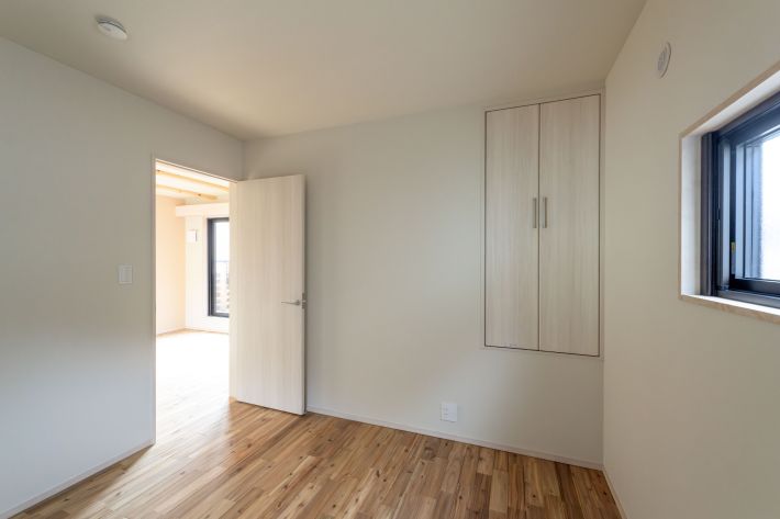 セカンドリビングからホールを挟んで正面に見える部屋は主寝室です